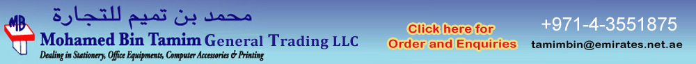 Founded in 1994, Mohamed Bin Tamim General Trading LLC is one of the Fastest growing suppliers of stationery, Office Equipments, Computer Accessories and Technical Services etc, Delivering superior quality producrs to clients at competitive prices. We are devoted to serving our customers and deliver to them only the best in quality products. We have an impressive list of customer base of over 100 companies which includes such as Dubai Internet City Administration Office, Dubai Media City Administration Office, Knowledge village Administration office, Dubai Holdings, Better Homes, Empower, Lloyds Bank TSB, British American Tobacco, The Media House, Etisalat Offices, Dubai Minicipality (TPT) etc.